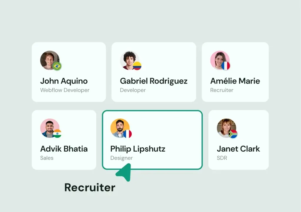 You can hire for a wide range of roles, including Executive Assistants, Accountants, SDRs, Designers, Developers, Ops Managers, and more — across multiple time zones.